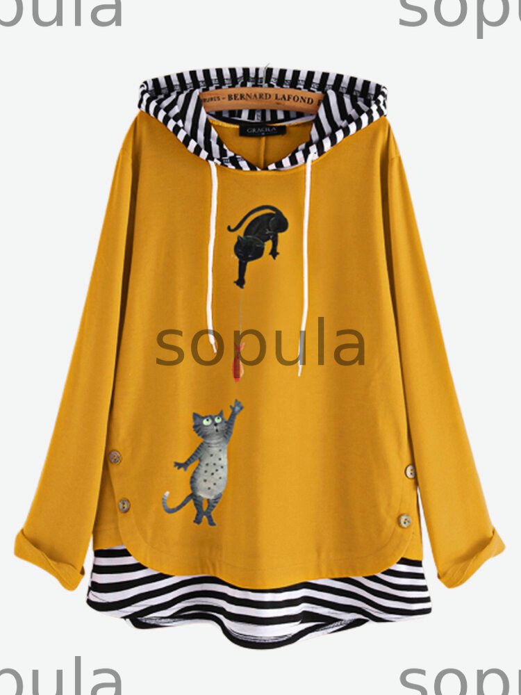 Stripe Patchwork Cartoon Print Long Sleeve Hoodie
